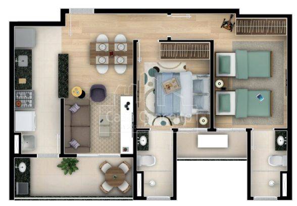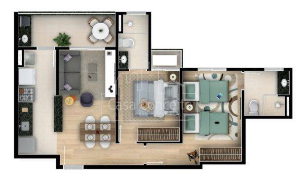 02 dormitórios sendo 01 suíte