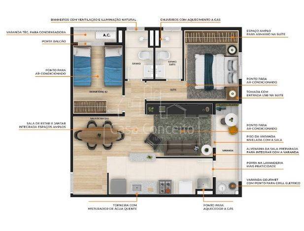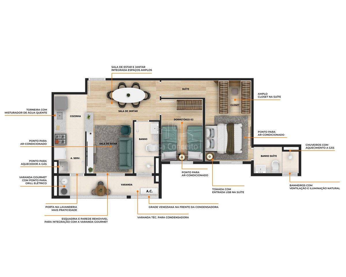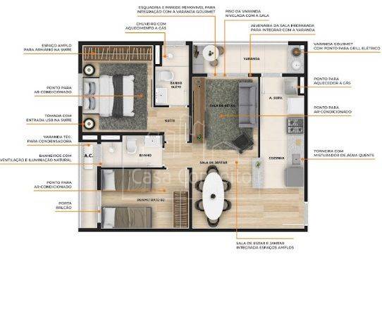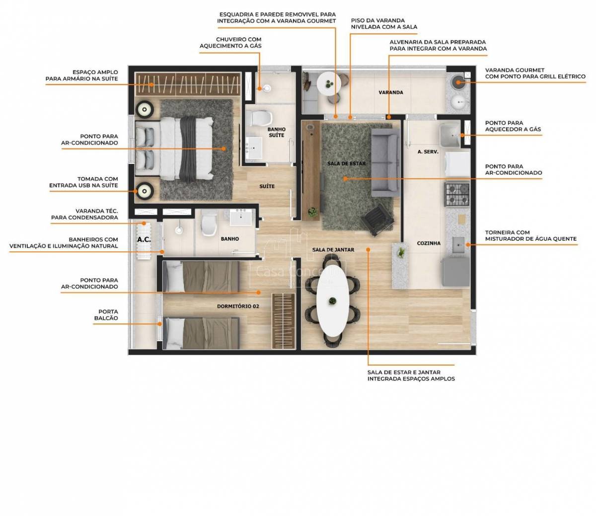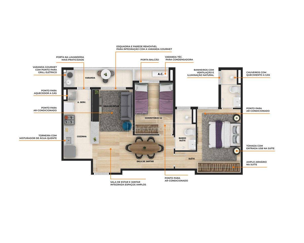 Lançamento JR CAMPOLIM II, O MELHOR PREÇO da região do Campolim. Condomínio oferecendo estrutura de lazer completa, portaria 24 horas, tomada USB (na suíte, salão de festas/Coworking), preparação para Automação, preparação para aquecimento à gás, preparação para ar condicionado, Car Wash, tomada para carro elétrico, Piscina adulto e infantil, sauna integrada com a piscina, salão de festas/Coworking, Salão de jogos, Playground, Brinquedoteca, Pergolado Sombreado, Sala Fitness, Pet Place e Care e muito mais conforto! Apartamentos de até 63m², sendo 02 dormitórios com 1 suíte, opção de 02 varandas. Será entregue com Piso Laminado na sala e dormitórios. Banheiro, cozinha, varanda e área de serviço com piso cerâmico.