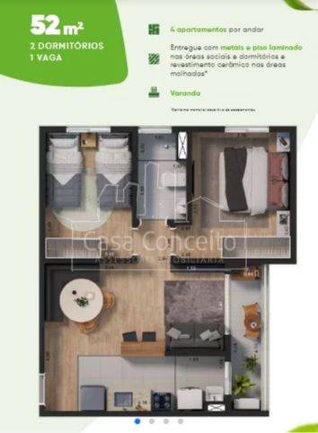 Parque Vida 4 apartamentos por andar Áreas sociais e dormitórios entregues com metais e piso laminado Revestimento cerâmico nas áreas molhadas. Condomínio com áreas de lazer completa com piscina, playground, salão de festa, academia, quadra de Beach tênnis. O Parque Vida está localizado na Vila Rica - uma região repleta de facilidades e de fácil acesso à Raposo Tavares.