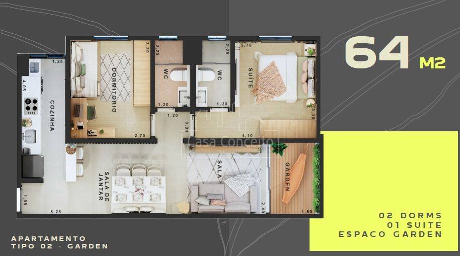 3 opções de planta 58m² a 64,24m²