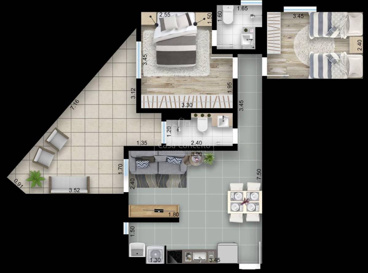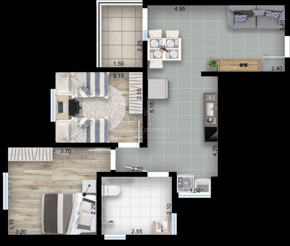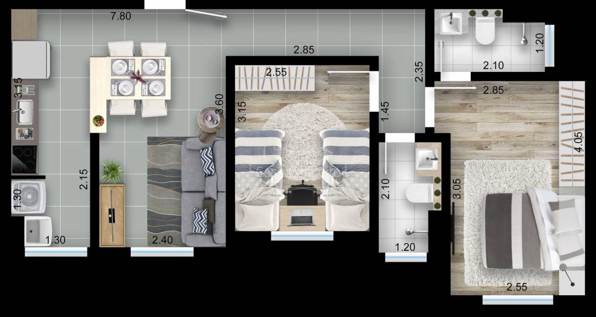 02 dormitórios sendo 01 suíte