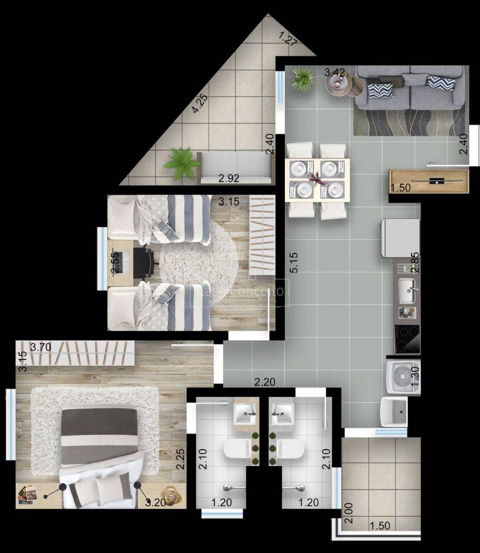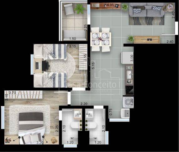 Garden, 02 dormitórios sendo 01 suíte