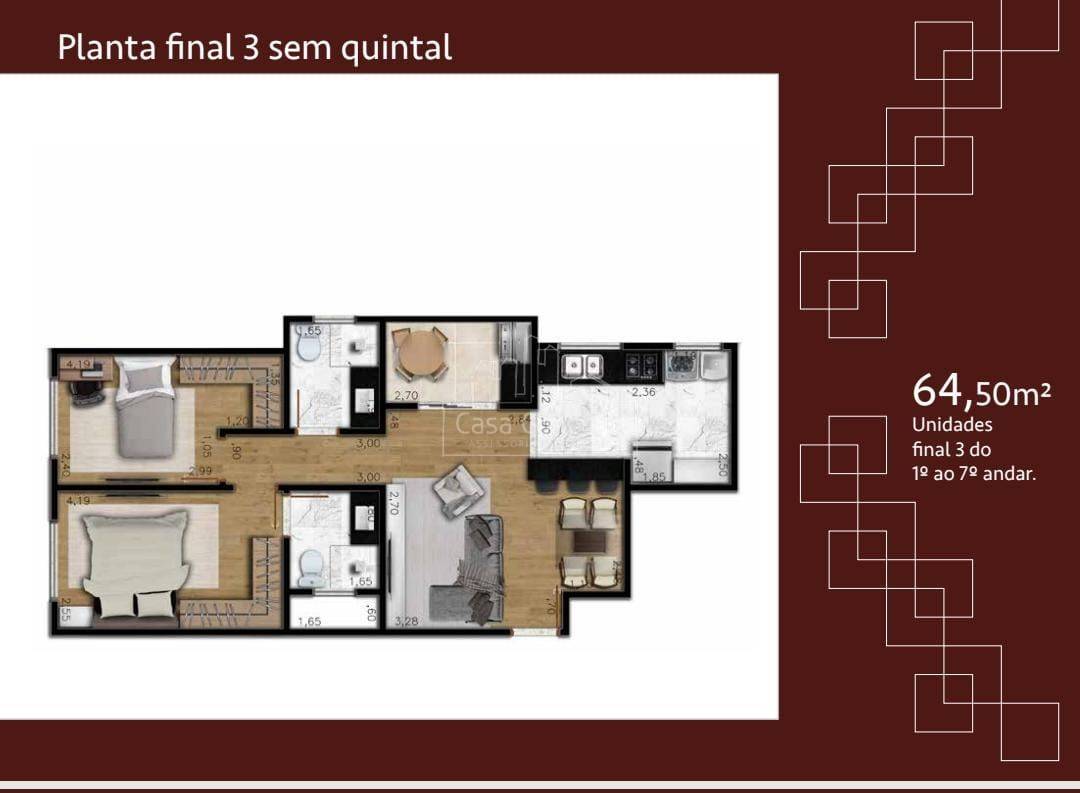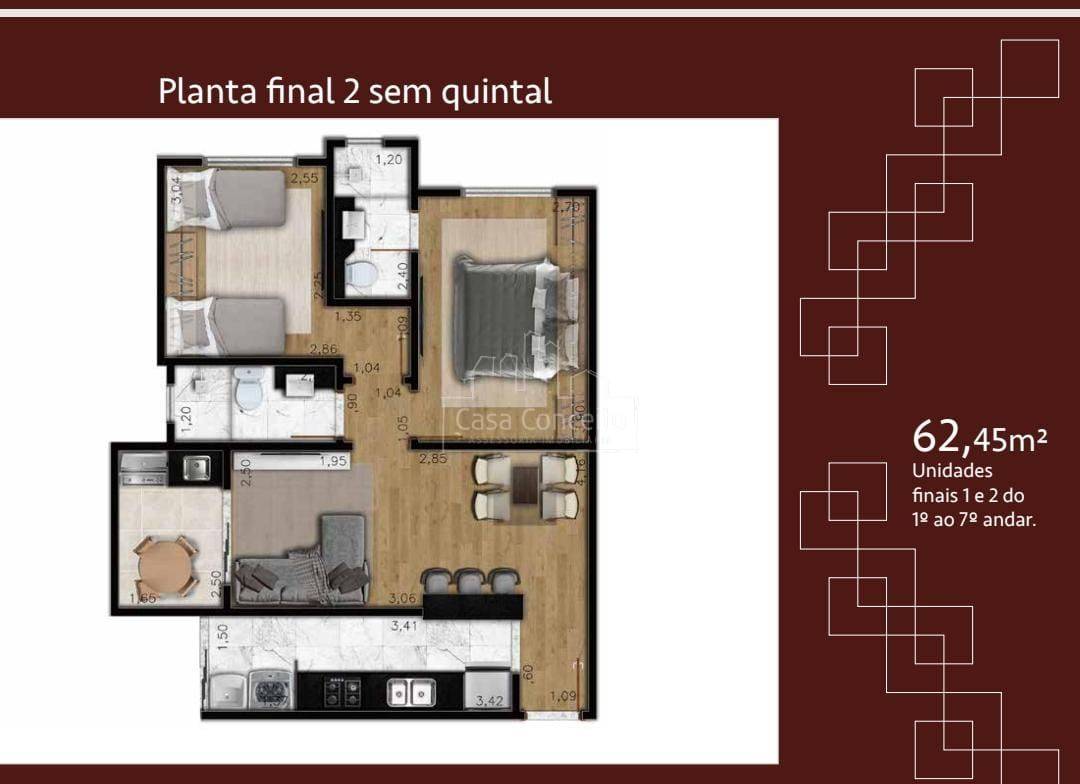 64m2 e 62m² com 2 dormitórios sendo 01 suíte