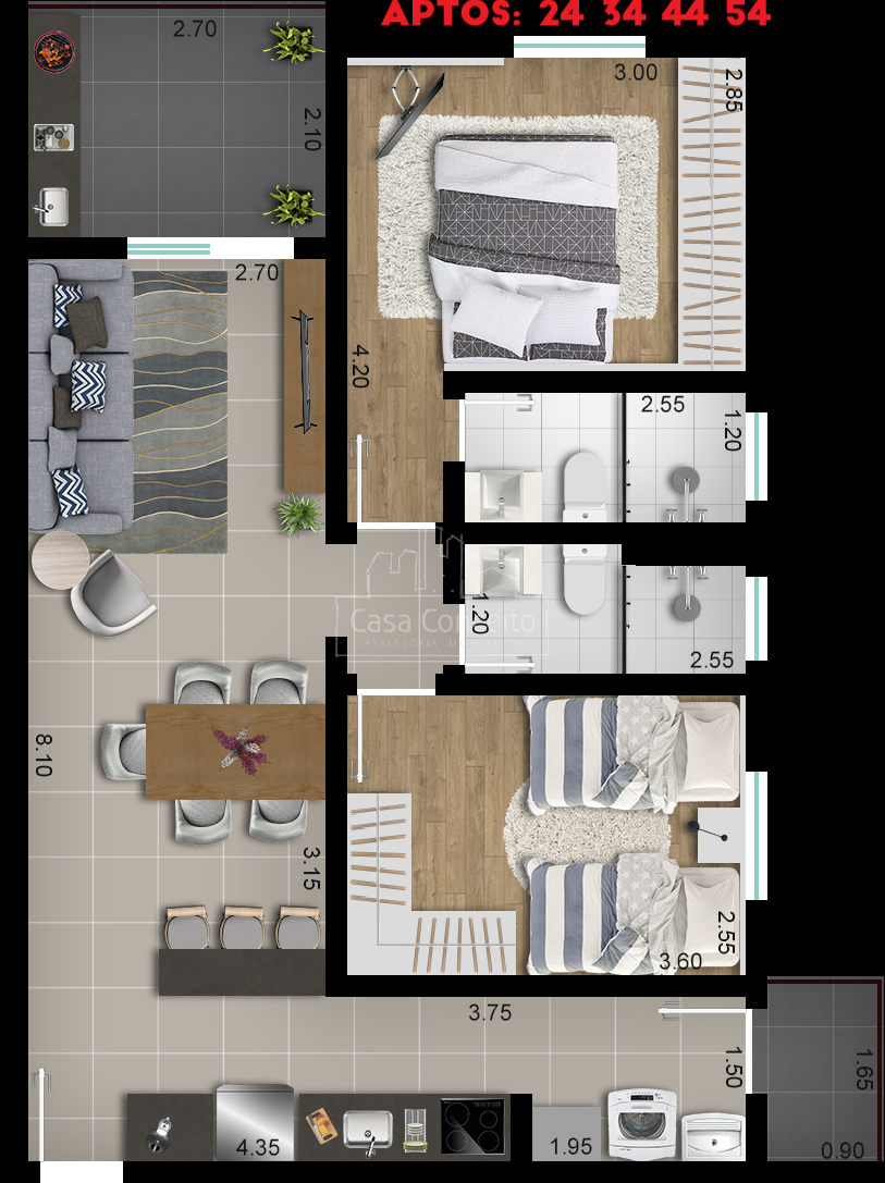 Novo empreendimento a venda na Vila Santana com opções de apartamento de 70m ² a 117 m² com vagas cobertas e descobertas, todos com 2 dormitórios sendo um suíte. Com sacadas a partir do 1 andar, e térreo com quintal.