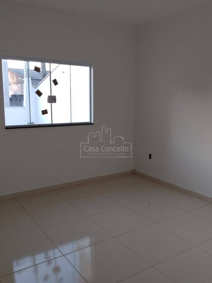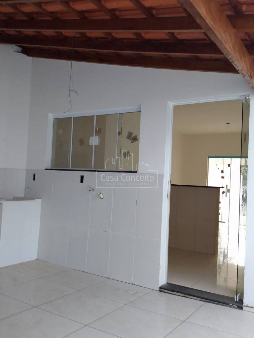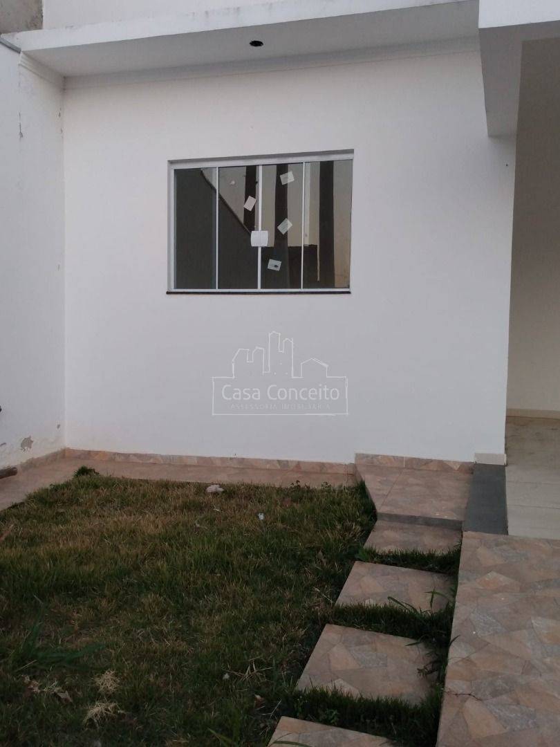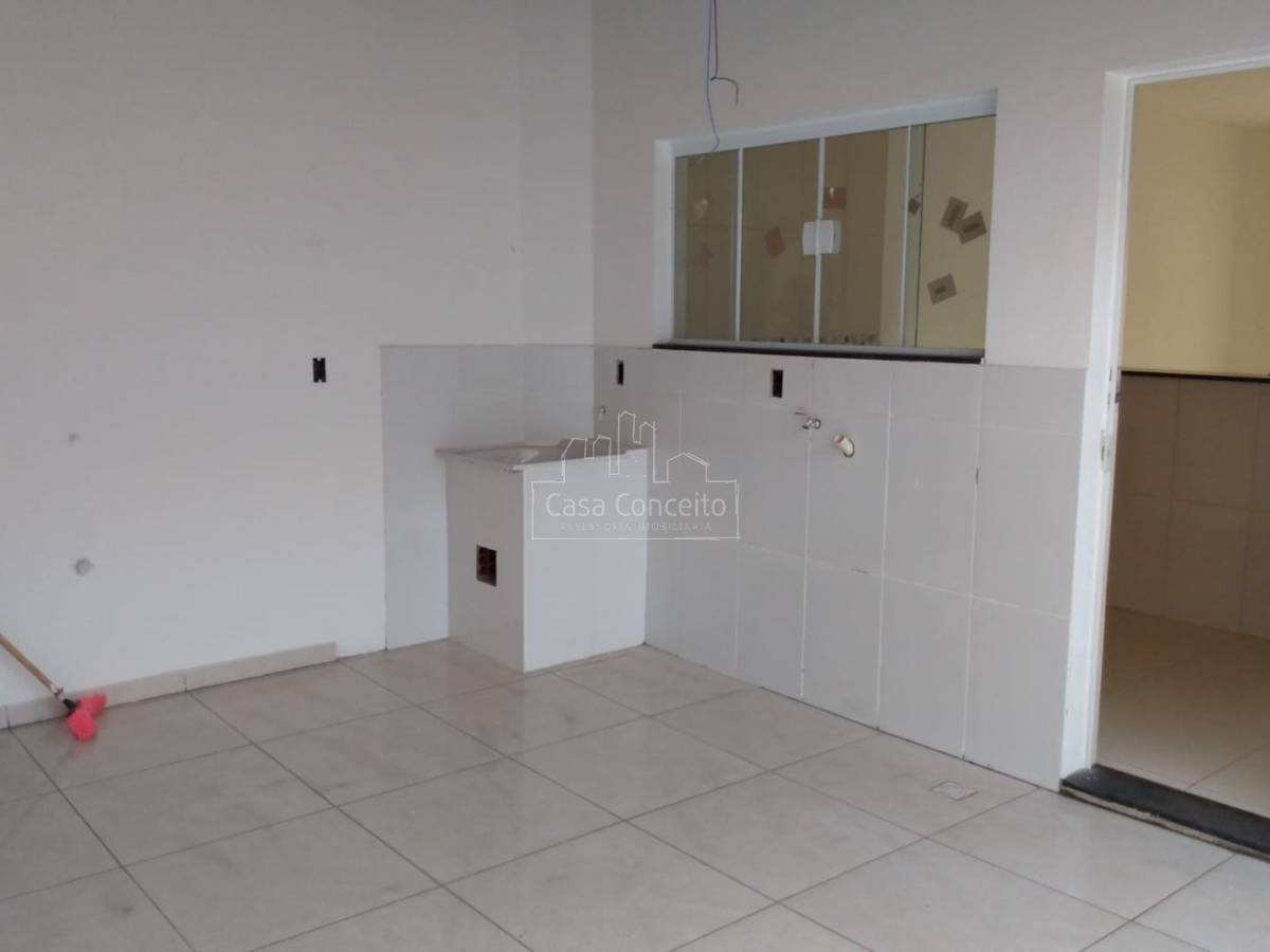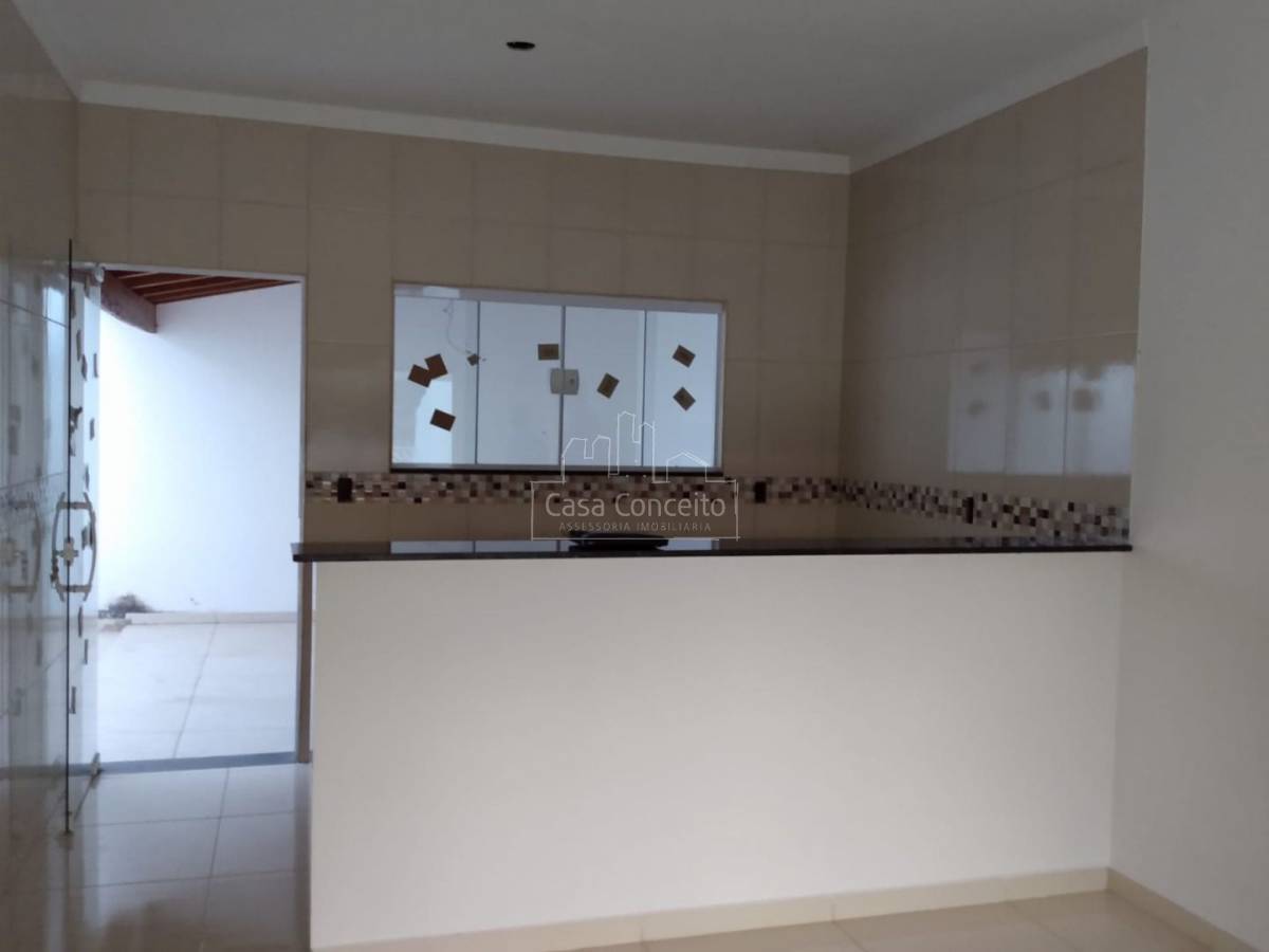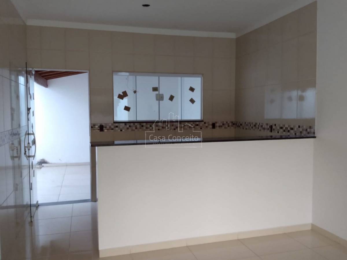 Casa térrea com 2 dormitórios, 1 banheiro com revestimento até o teto, Sala 2 ambientes, cozinha integrada com gabinete, lavanderia, na área externa. Porta externas e janelas de blindex e portas internas de madeira.
