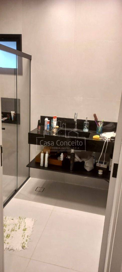 Casa a venda em condomínio fechado, com todos os ambientes em porcelanato, aquecedor elétrico, torneiras mano comando, encanamento para triturador de lixo, banheiros com chuveiro, box e pias de mármore, portas laqueadas, cozinha, lavanderia e quartos com portas blindex.Frente com textura em grafiato, garagens para 2 carros (coberta e descoberta), jardim, quintal com encanamento e pontos eletricos para piscina.Bairro estruturado na Zona Oeste, próximo ao Santo Supermercados, Habbib´s, bancos entre outros.