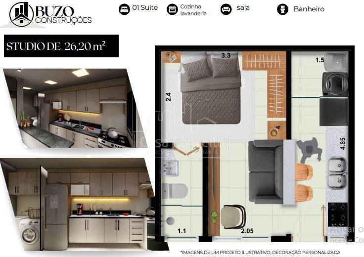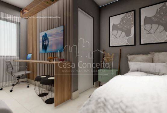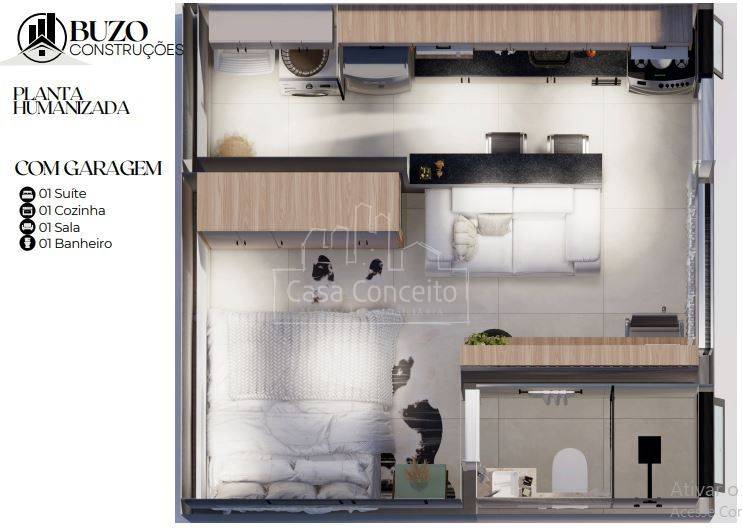 O apartamento conta com uma suíte, proporcionando privacidade e comodidade, uma cozinha integrada e funcional, ideal para refeições rápidas e práticas, e um banheiro moderno com acabamentos de qualidade.