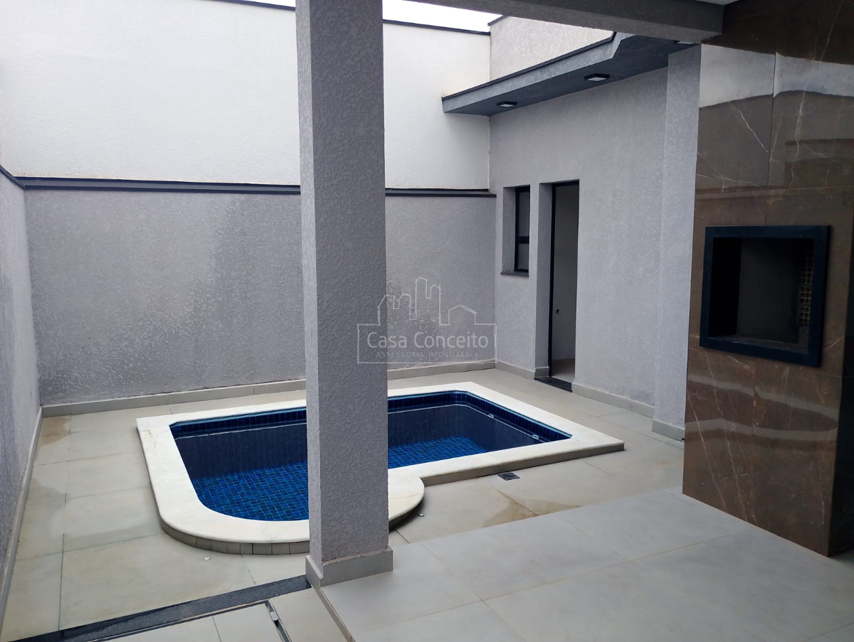 O imóvel conta com três dormitórios, sendo uma suíte espaçosa, além de uma sala ampla, ideal para proporcionar aconchego e praticidade no dia a dia. A área de lazer é um grande diferencial, com um espaço gourmet equipado com churrasqueira, perfeito para reunir amigos e familiares. A casa também dispõe de uma piscina com hidro, proporcionando momentos de relaxamento e diversão.