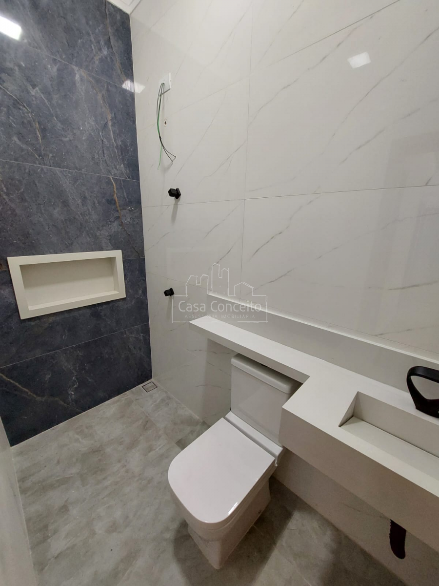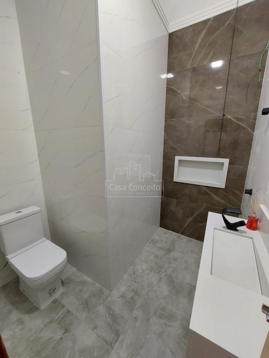 cozinha é equipada com bancada de mármore, pia gourmet, exaustor e cooktop, oferecendo praticidade e requinte. O imóvel possui 3 banheiros completos (incluindo os das suítes), todos com pias e nichos em Prime Branco, garantindo funcionalidade e estilo.